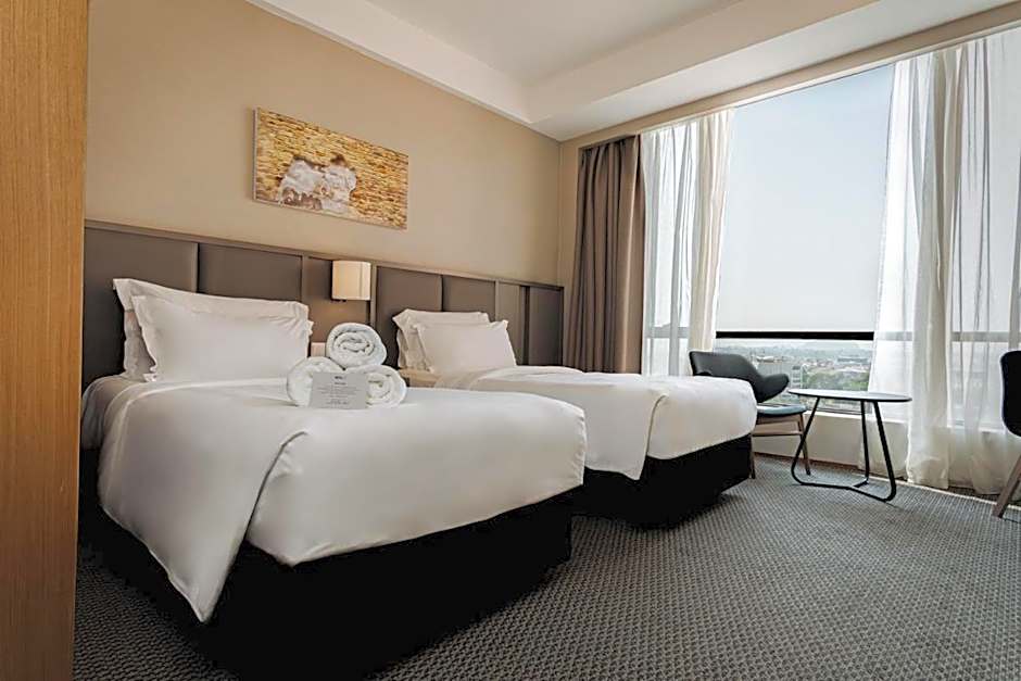 Providing free toiletries, this twin room includes a private bathroom with a bath, a shower and a bidet. The spacious air-conditioned twin room provides a flat-screen TV with cable channels, soundproof walls, a mini-bar and a tea and coffee maker. The unit offers 2 beds.